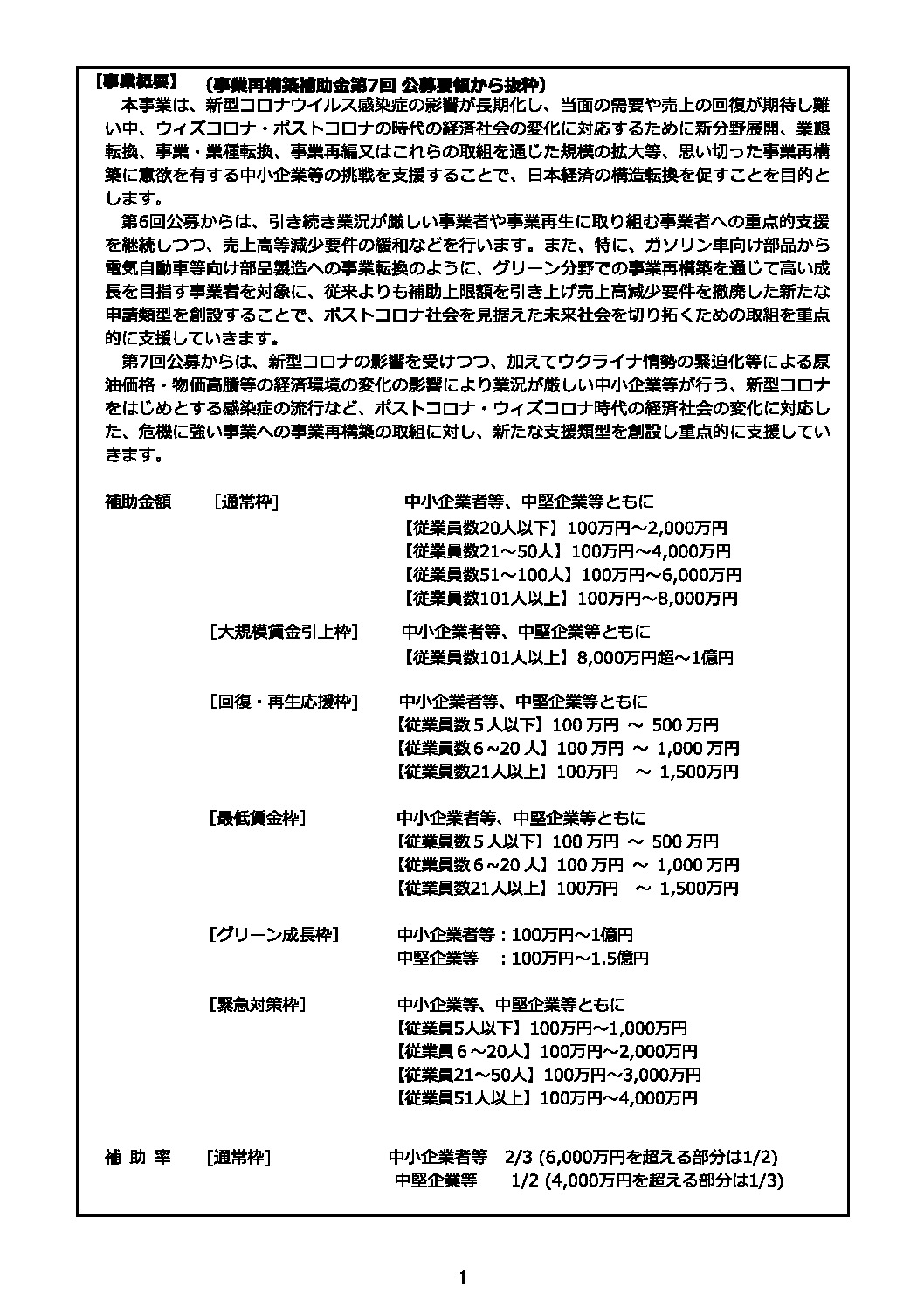 第7回事業再構築のポイント(公募要領抜粋)